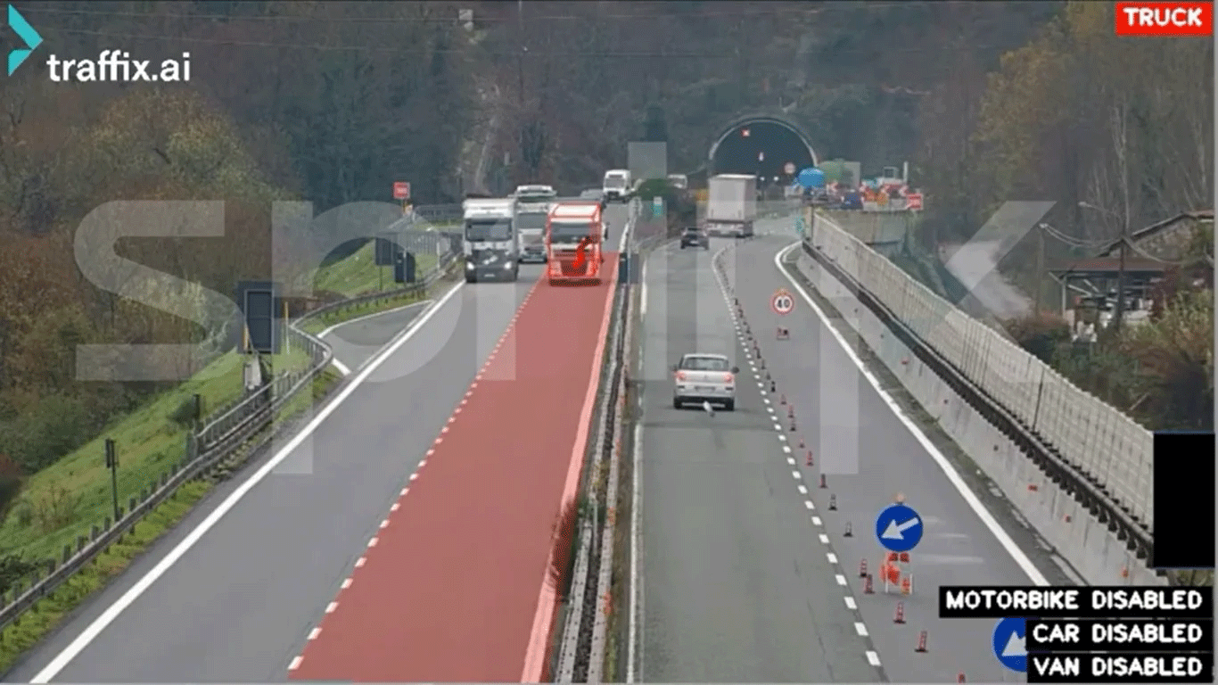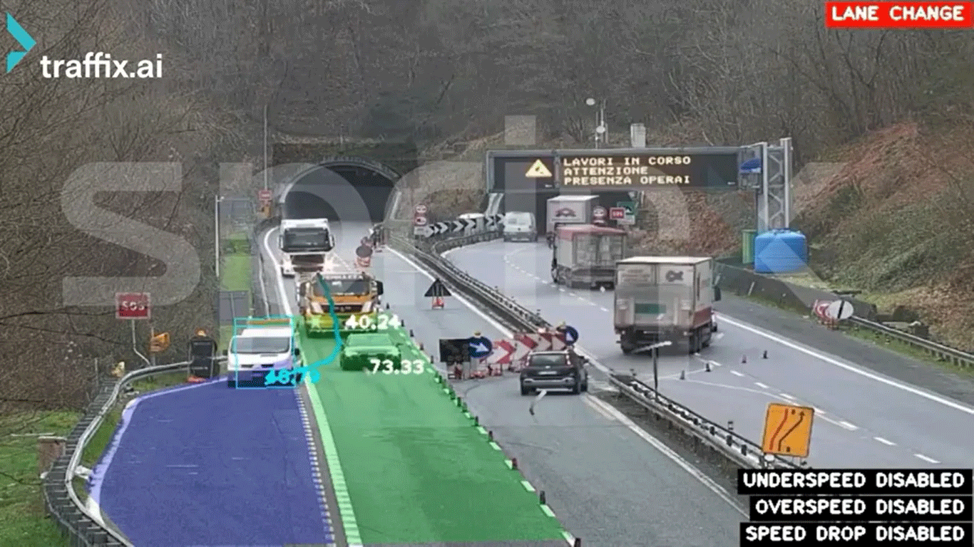 traffix.ai can quickly alert operators in case of accidents, traffic slowdowns or gatherings, sending event notifications, as well as to the centralized management platform Sprinx dragon, to third-party systems (eg VMS, SCADA or ITS platform) capable of triggering scenarios of visualization and intervention.