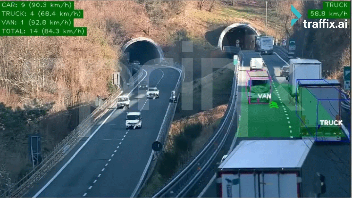 Leveraging Deep Learning (AI) and 3D Object Tracking, traffix.ai is the Sprinx solution dedicated to critical infrastructures such as roads, highways, tunnels, bridges, and viaducts, capable of analyzing video streams in real-time to classify vehicles and quickly identify anomalous situations in traffic. It combines extremely high detection capability with a drastic reduction in false alarms.